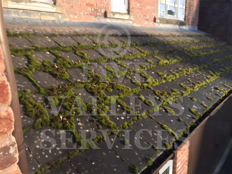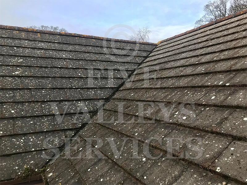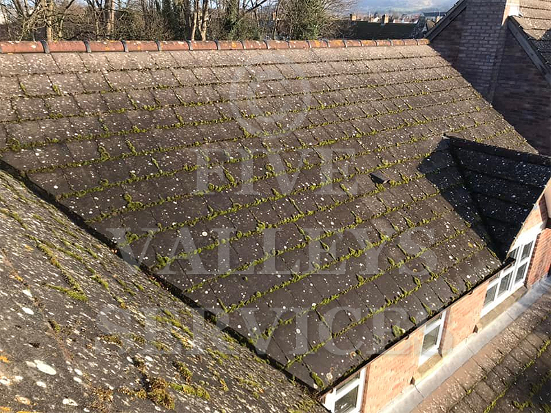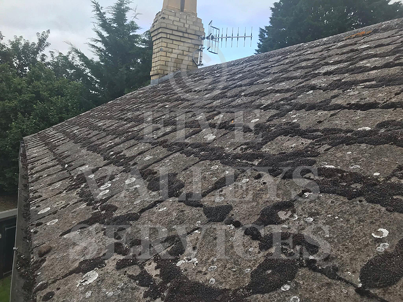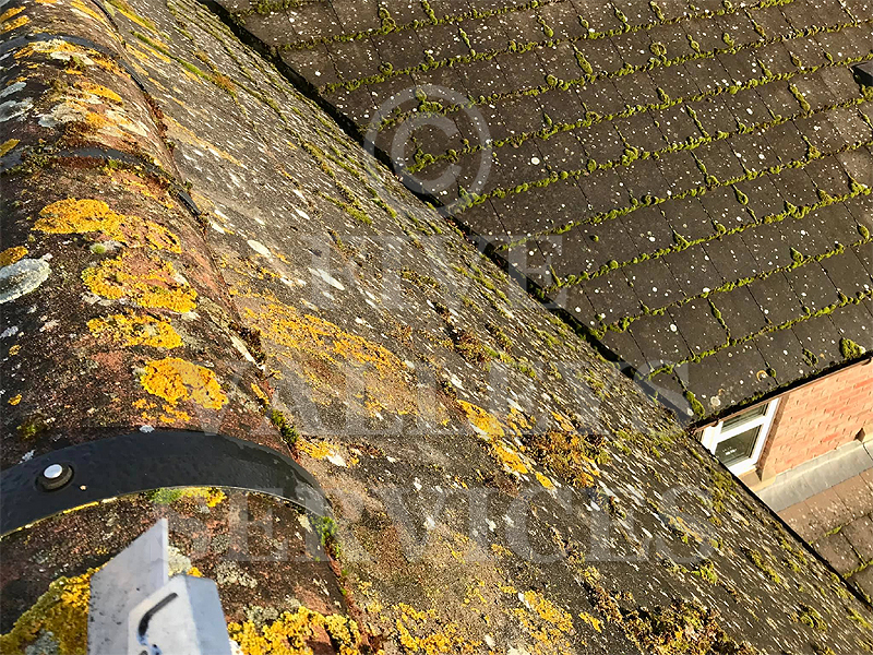 5 months on from the moss removal & biocide treatment and the roof in the centre of the photo is looking almost as good as new!