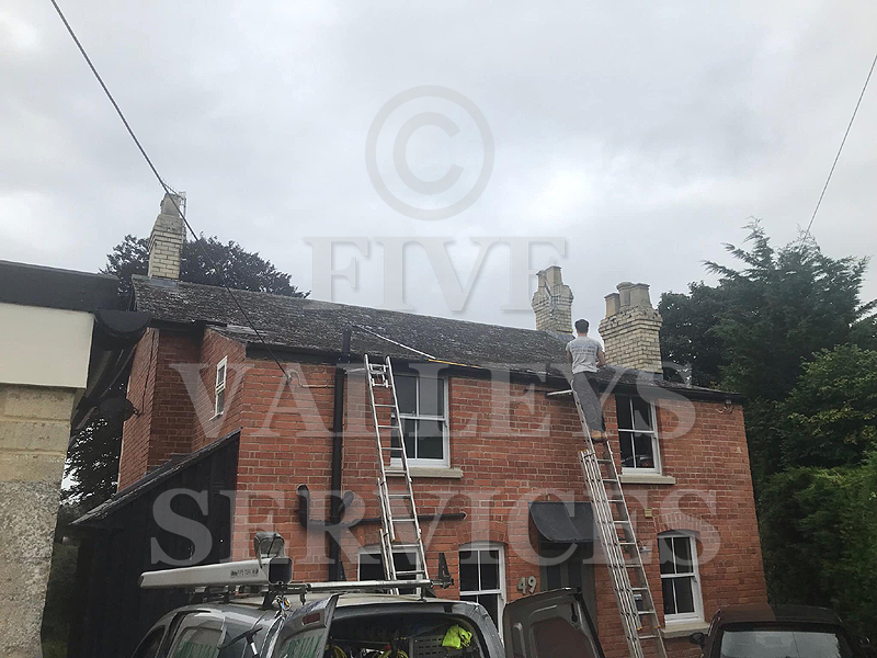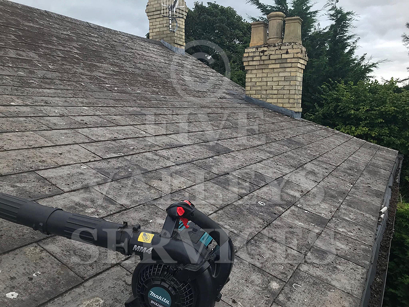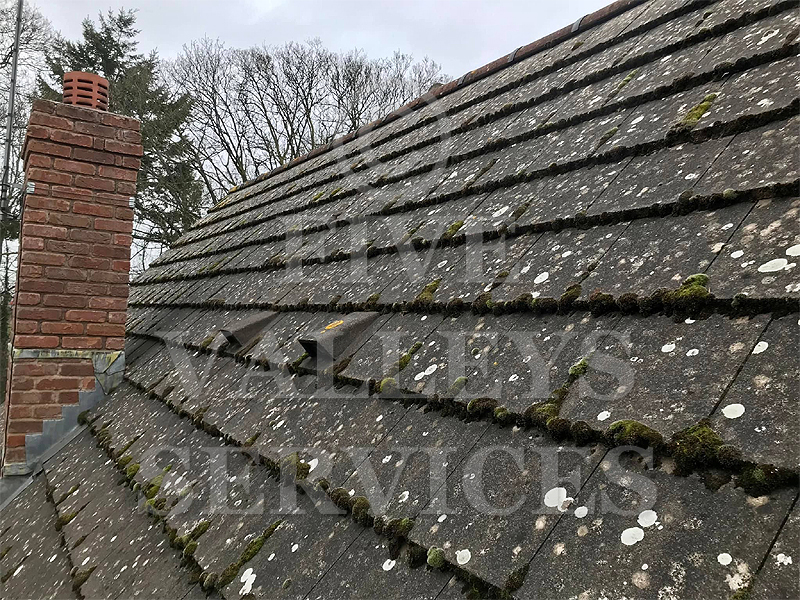 A recent moss removal & biocide softwash on a delicate victorian slate roof in Cashes Green.